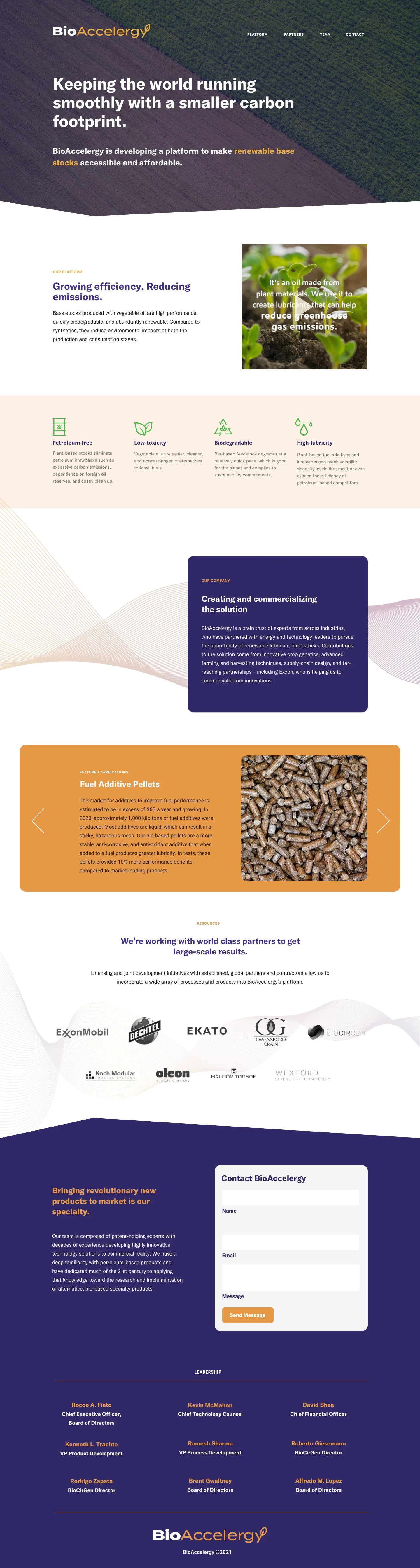 The founders of Bioaccelergy wanted a brand identity that struck the balance of innovative but still familiar, in hopes to gain the attention of those who have traditionally invested in big oil. From the logo and color palette to iconography and web, a full suite of brand assets were created to help them debut their proprietary technology.
