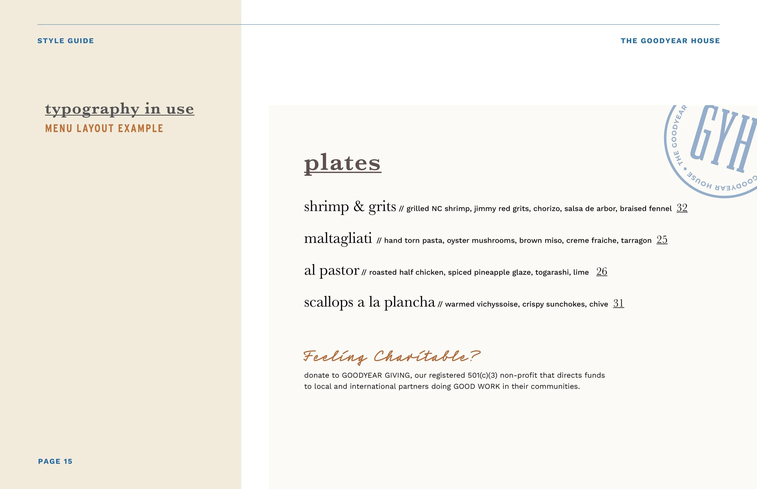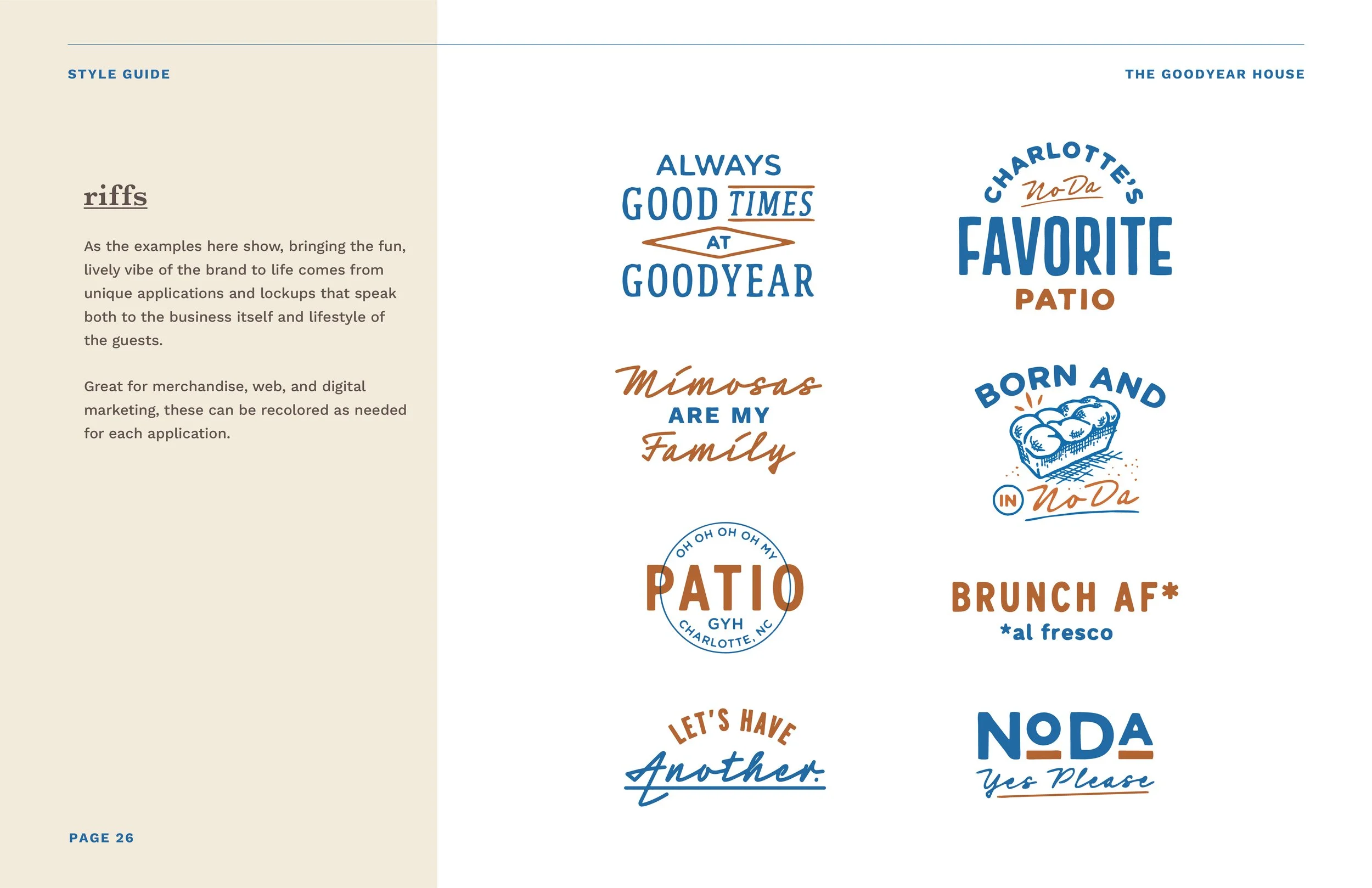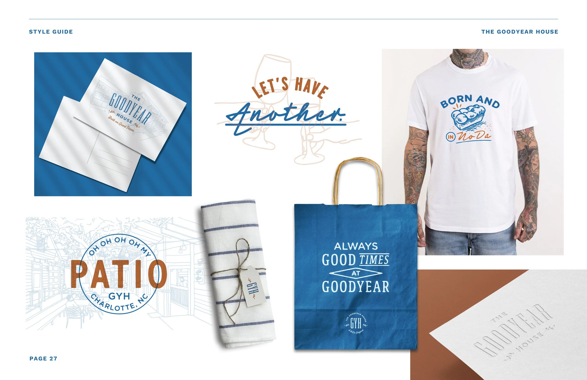 Located in the NoDa neighborhood of Charlotte, North Carolina, The Goodyear House had well established itself as a favorite hang by the time they reached out for some design help. While their menu and vibe was right on point, they felt their original brand was already becoming outdated, having been created with more of a ‘farm to table’ vibe. This project involved refreshing their original logo and pairing it with a new color palette, new novelty logos, illustrations, and lockups that could inject a little more personality into this neighborhood favorite.