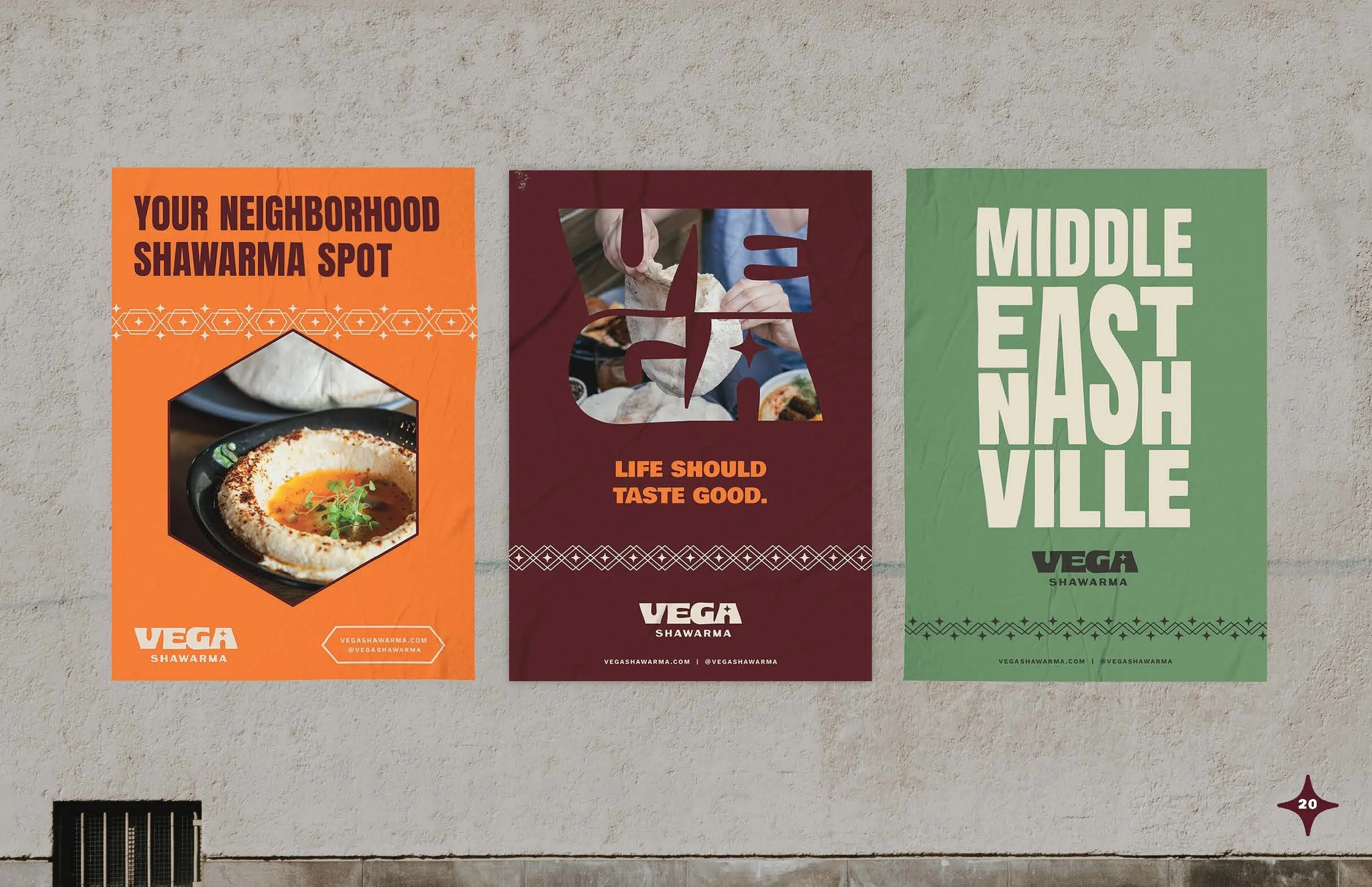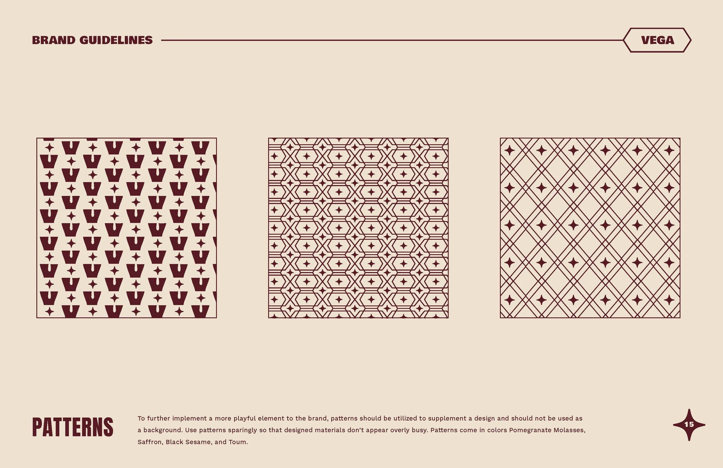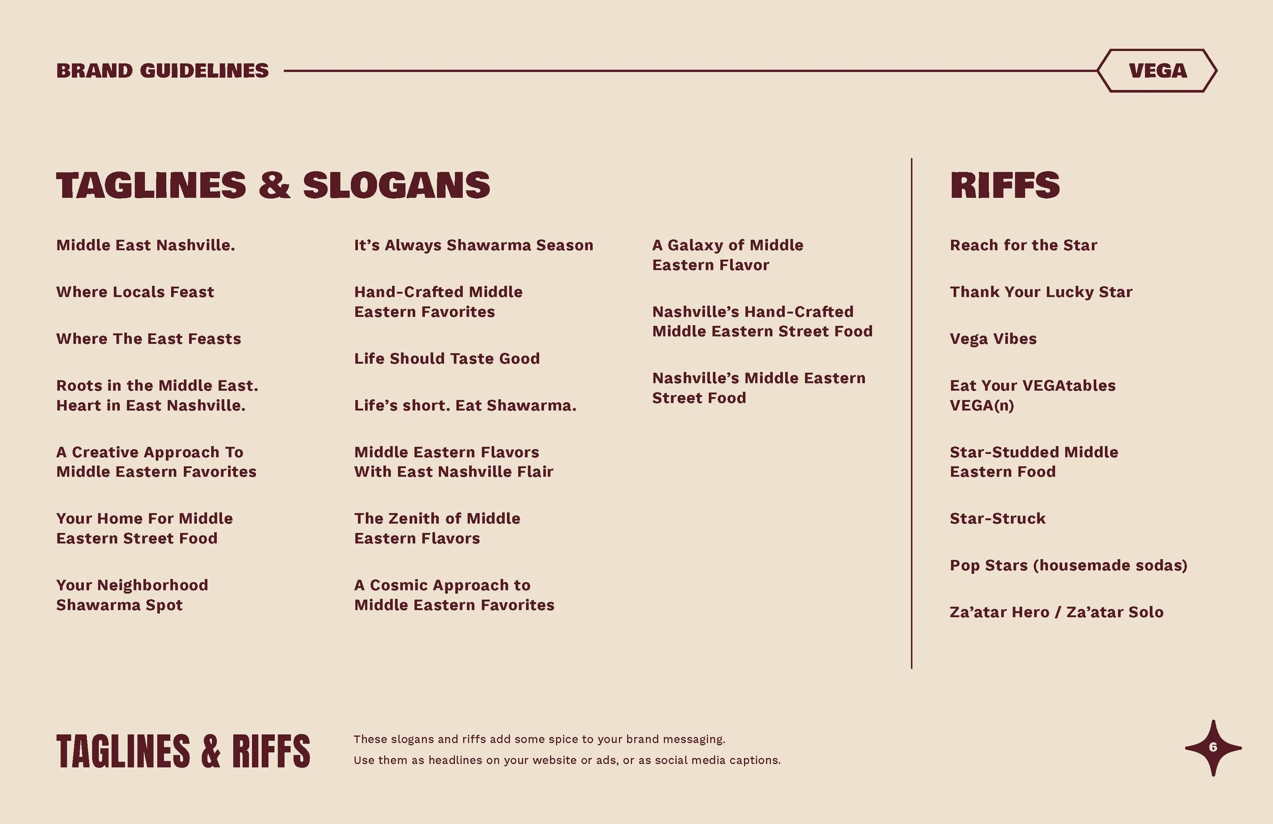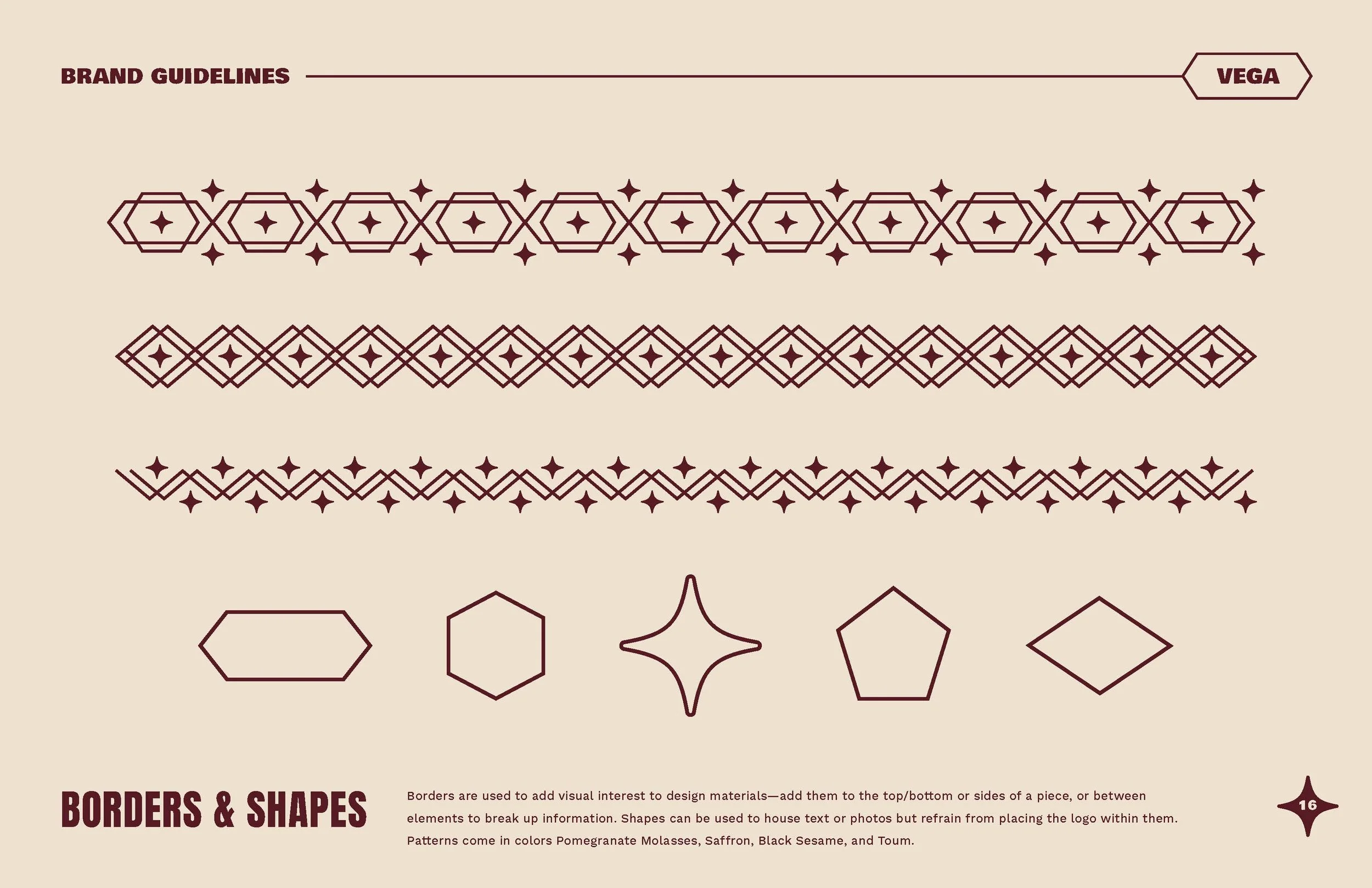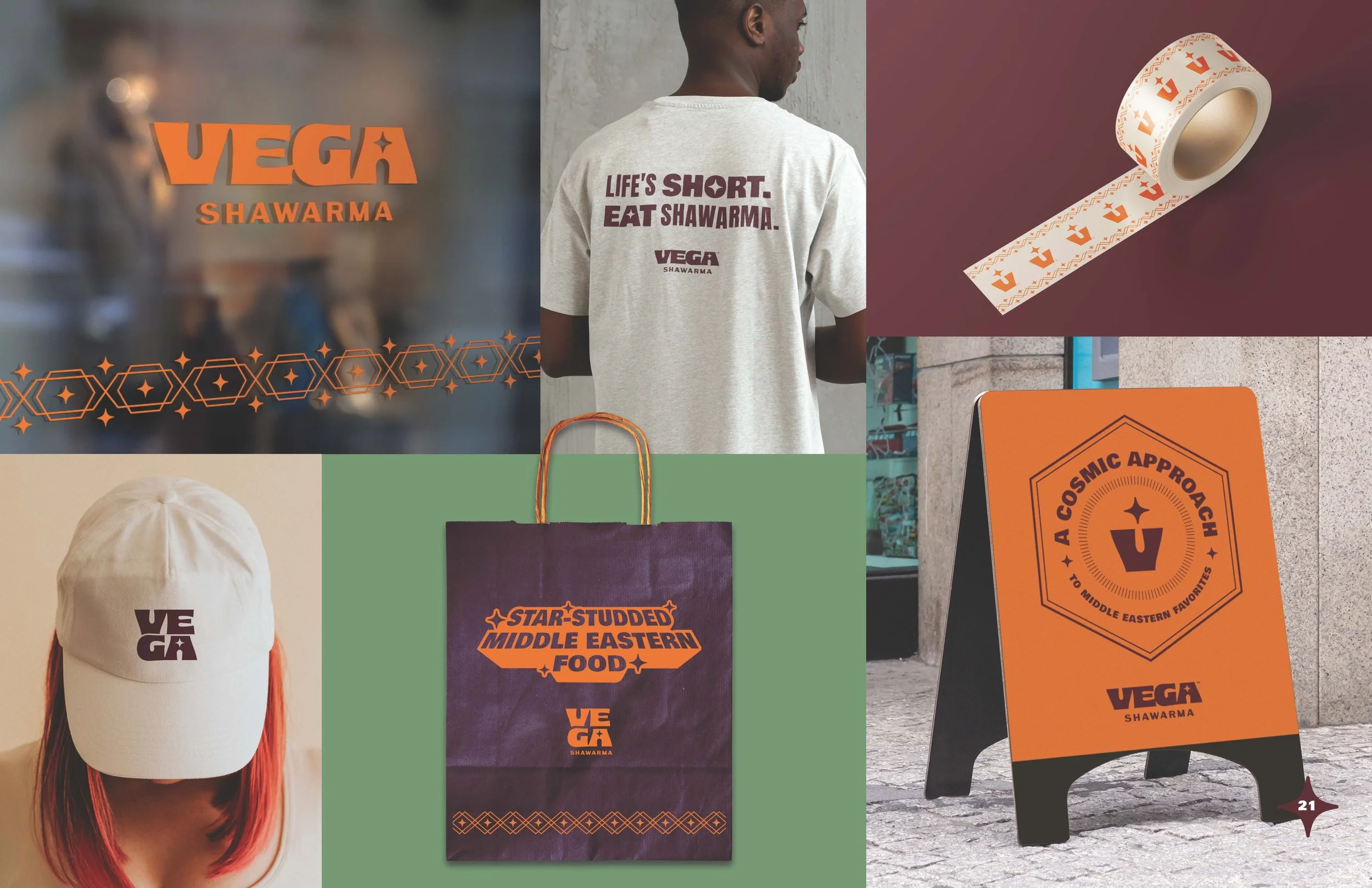 Vega earned it’s name by being the brightest star in the constellation, Lyra—a callback to its sister restaurant. Vega is also the 5th brightest star in the sky. Needless to say, the brief was star. The theme was carried through the logo, patterns, and graphic riffs.